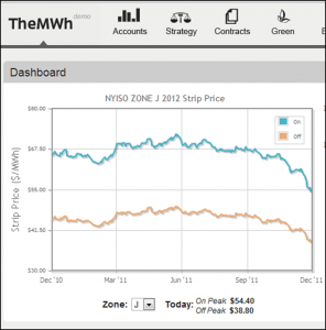If you look at The Megawatt Hour forward curve on our dashboard, you’ll see a remarkable graphic. This is the forward curve for electricity for the calendar year 2012.