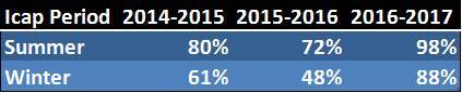 Here, we are using NYISO projections on cost of ICap in the new capacity zone (load zones G-J) as filed at FERC. (The reference point is to the rest-of-state — non- NYC–auction clearing prices for Summer 2013 and Winter 2013-2014. These numbers reflect the fact that the new load zone will not be phased in over three “capacity” years.)