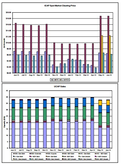 Here’s an update on day ahead clearing prices for New York State through May 2014, and a graphic that shows the capacity auction clearing prices for the summer strip. Let’s just say we’re living in interesting times.