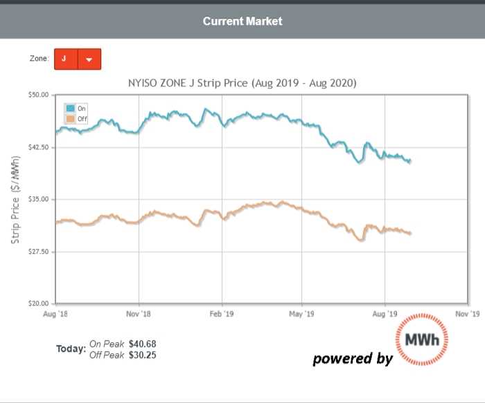 Customers who are looking to plan or who are inclined to remove some exposure to future power prices would be wise to consider taking advantage of this market movement. Customers who care most about ensuring they have budget certainty should consider purchasing some component of their electricity supply when market prices decline to these levels. The NY City market has seen prices well in excess of $50/MWh in the past. Market prices below $35-40/MWh represent an important buying opportunity.