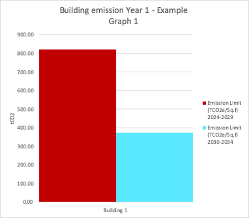 Once you have the gross floor area and your occupancy group, then you will be able to understand your facility’s exposure (in tCO2e) for the two periods established by LL97 (2024-2029 and 2030-2034) (see Graph 1). The information from your meter, the type of meter and the energy source will be useful for calculating your energy consumption.