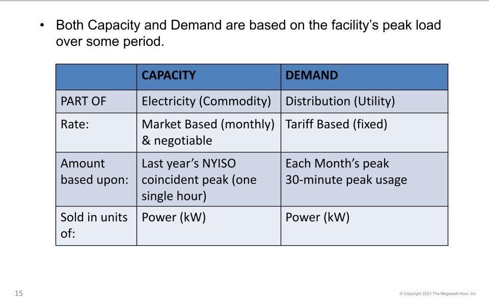 Demand response programs strategically help customers reduce their costs by either reducing energy (kWh), demand (kW), which is part of the utility delivery bill, selling load reduction Capacity into wholesale Capacity markets, and/or by reducing your capacity tag.