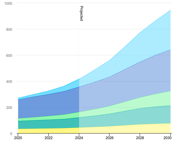 Meanwhile, the International Energy Agency provides a global perspective on demand growth projections (IEA (2025), Energy and AI, IEA, Paris https://www.iea.org/reports/energy-and-ai, Licence: CC BY 4.0). Their analysis, published this year, offers a range of scenarios that indicate that while data center-driven load growth is expected to increase significantly, uncertainty remains as to the pace and scale of AI-driven load growth.